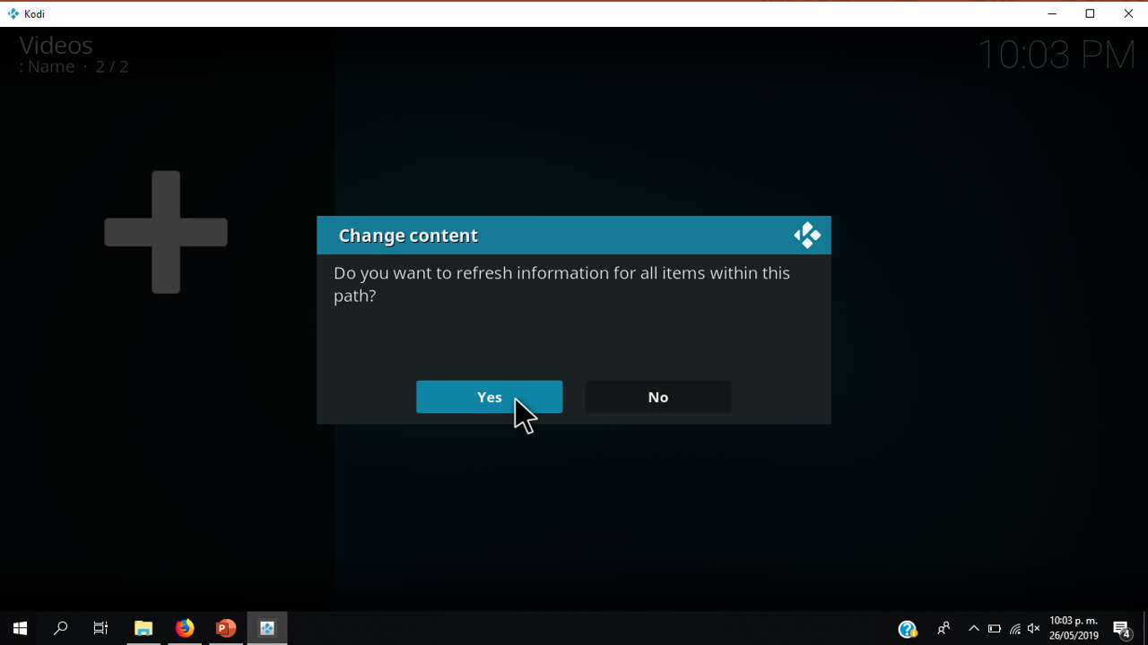 Seleccionamos Si para que Kodi analice nuestra carpeta (demos estar conectados a internet para que descargue la información de los videos encontrados):